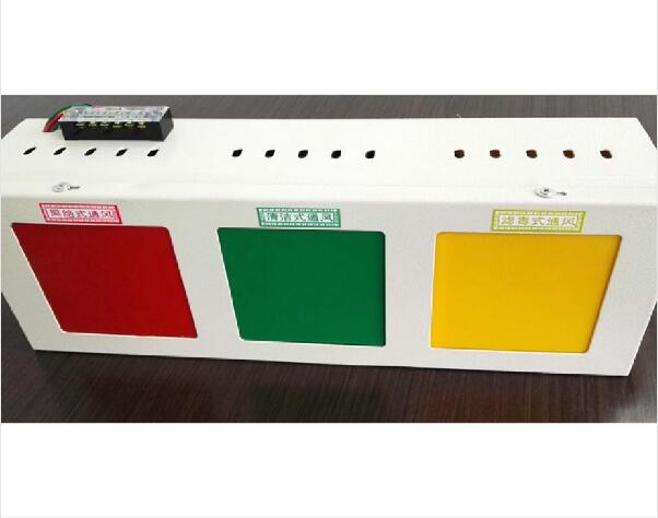 三防信號箱(通風方式信號燈箱)用于工程掩體內(nèi)部空氣質(zhì)量狀態(tài)的顯示和報警,實現(xiàn)對控制柜傳來的報警的電子信號做出反映。具有聲光報警兩種報警方式,具有良好的顯示性能和視覺效果。主要對三種空氣質(zhì)量情況進行報警:清潔、隔絕、濾毒。燈箱分別用三種顏色的燈光來對三種不同空氣情況報警:清潔——綠色燈光;隔絕——紅色燈光;濾毒——黃色燈光。